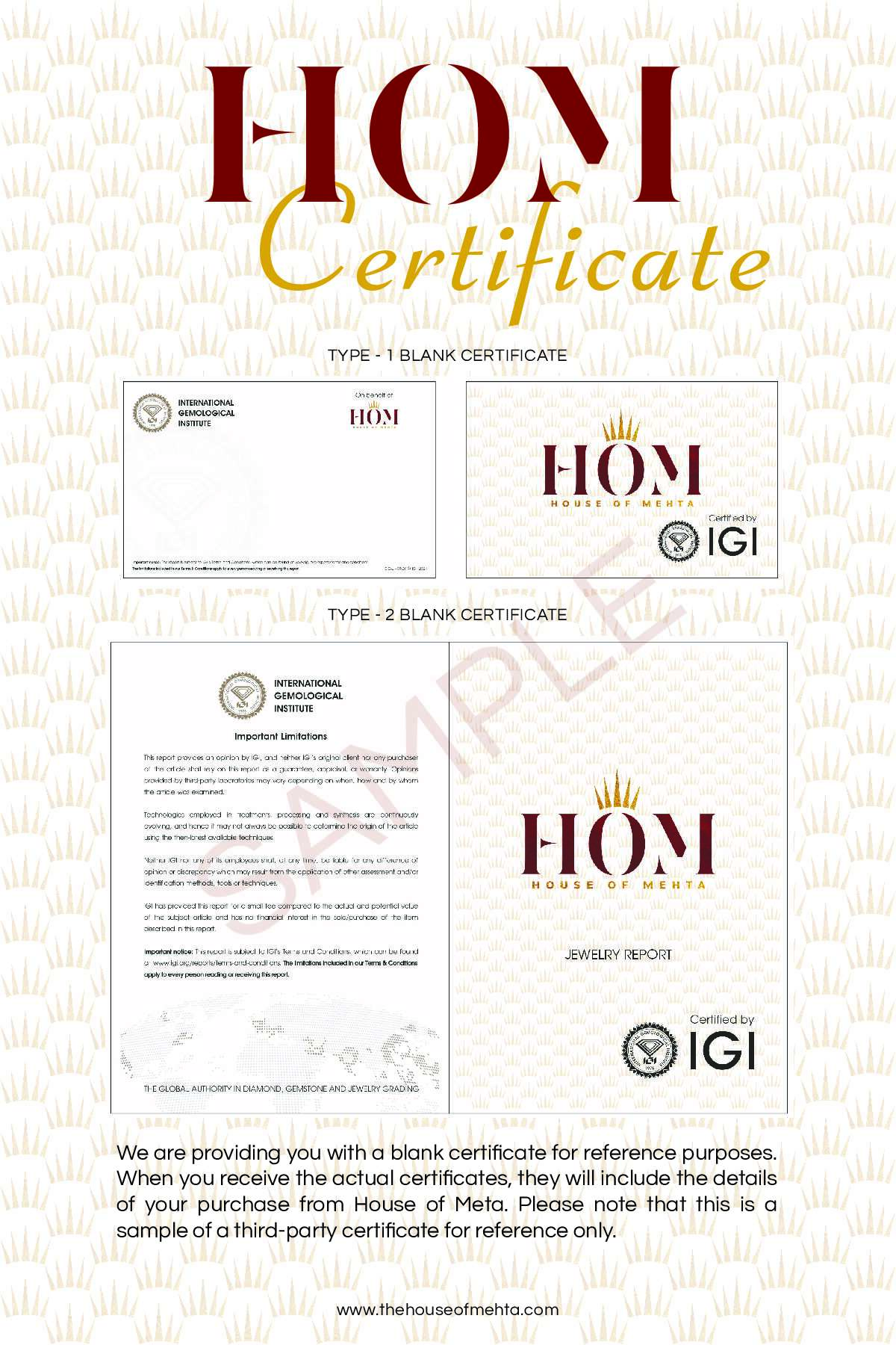 This certificate is not just a formality – it is a guarantee of authenticity, attesting that the diamond or jewellery piece is genuine, ethically produced, and finished to the exacting quality benchmarks that define the House of Mehta.